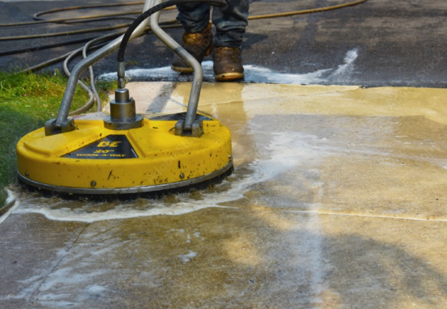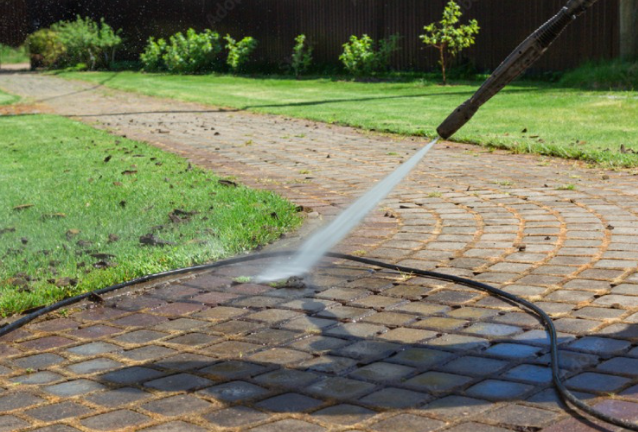Pressure washing a driveway is a home cleaning task that uses a high-pressure water jet to remove dirt, grime, and stains from a driveway's surface. The pressurized water breaks the bond between the dirt and the driveway, penetrating deep into the concrete to remove oil stains and other debris. Pressure washing can also help prevent slipping hazards that can be caused by a buildup of substances like algae, oil, and wet leaves
